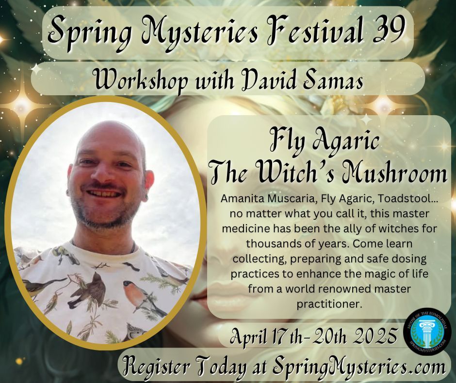 Amanita Muscaria, Fly Agaric, Toadstool...no matter what you call it, this master medicine has been the ally of witches for thousands of years. Come learn collecting, preparing, and safe dosing practices to enhance the magic of life from a world renouned master practitioner.