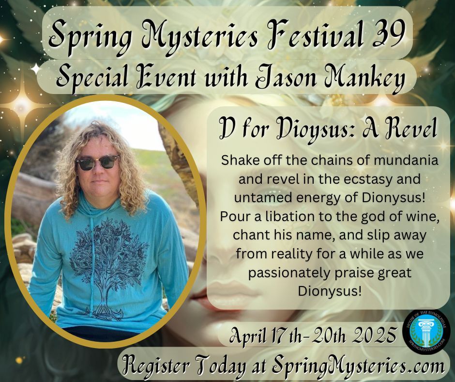 Shake off the chains of mundania and revel in the ecstasy and untamed energy of Dionysus! Pour a libation to the god of wine, chant His name, and slip away from reality for awhile as we passionately praise great Dionysus!